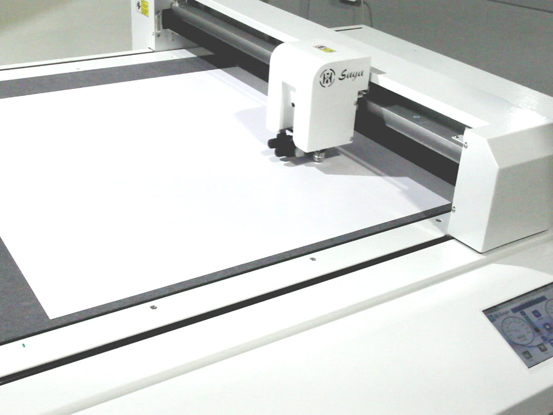 Как театр начинается с вешалки, так и изготовление календаря начинается с бумаги или если быть точнее с дизайнерской бумаги, которую так же пришлось сменить. Из прежнего остался только формат 700 х 1000 мм которую надо было распустить на формат, который можно разместить на столе печатного плоттера, в нашем случае разрезать по полам. Если вы следите за нашей VK группой то уже знаете о том элегантном способе к которому мы прибегли. Такой ширины резака у нас не оказалось, но в нашем демо-зале находился планшетный режущий плоттер Saga SG-FCT6698, который хоть и рассчитан на немного другой вид работ, например, изготовление эксклюзивной упаковки, с поставленной задачей справился на ура.
